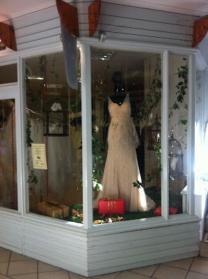 We decided upon  the 1251 from the 'Angelina Faccenda by Mori Lee' 2013 collection, in a stunning champagne colour. Amy then hopped in to the window, replacing the mannequin, and it was time for the fun to begin!